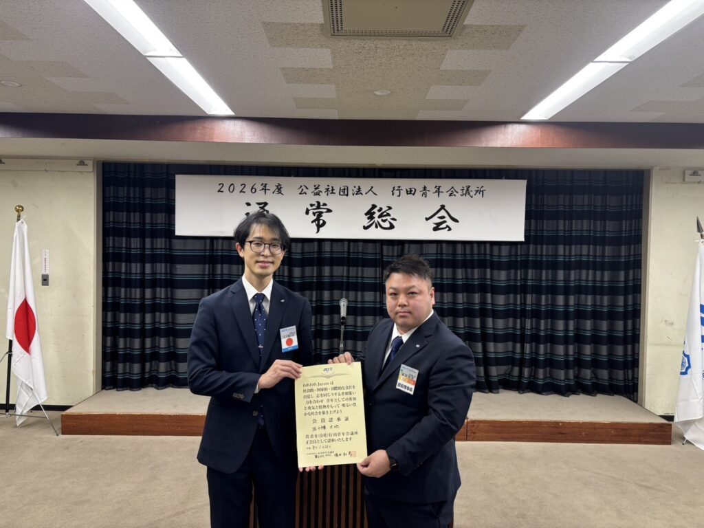 また、正会員承認伝達式も行い、五十幡大地君、茂原 康平君が新たに正会員となりました。
